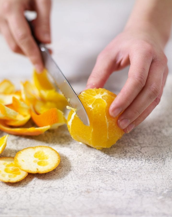 - 양면 껍질과 흰 속껍질(pith)을 과도(paring knife)로 따라 깔끔하게 제거.