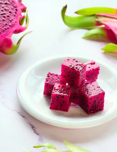 - 용과: 껍질을 칼로 깊이 제거한 뒤, 과육만 사각으로 깍둑썰기.