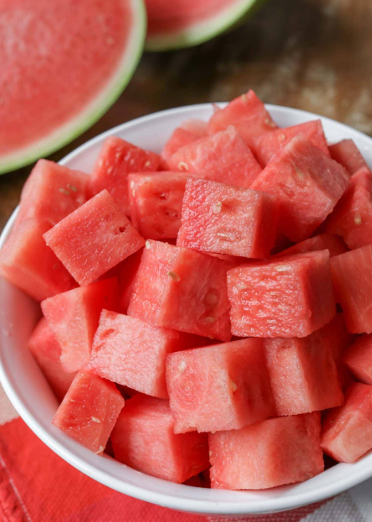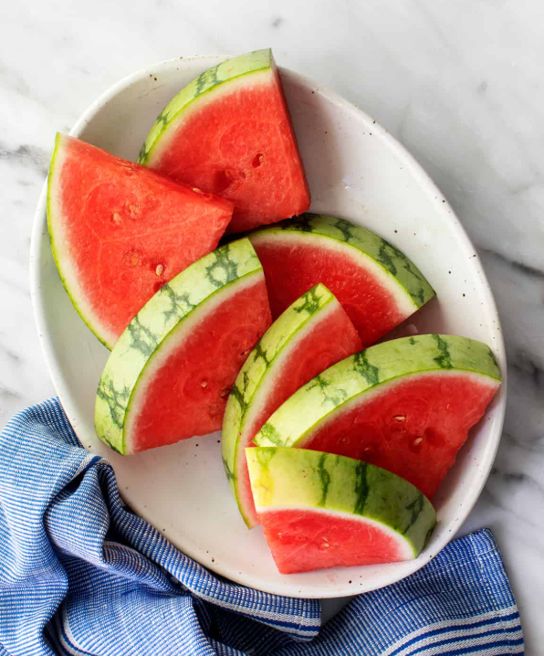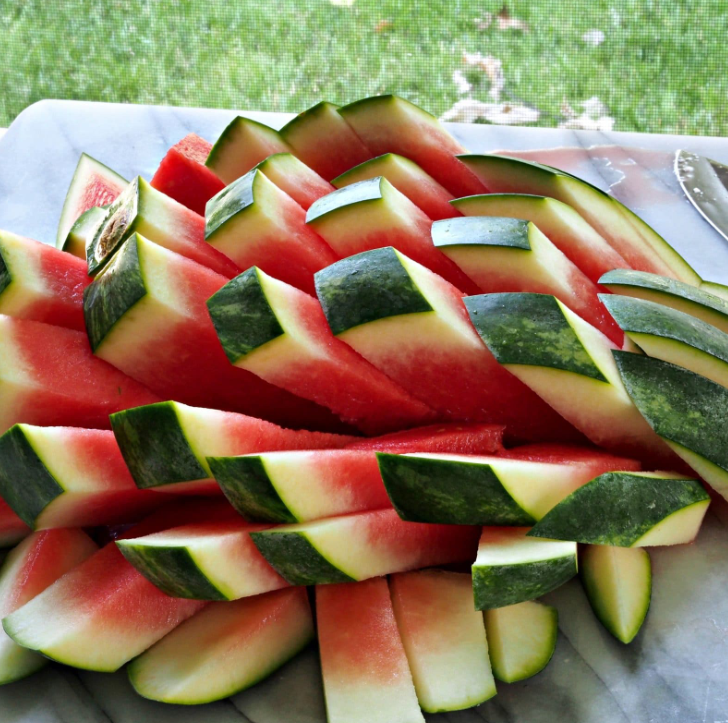 - 수박의 양끝을 먼저 잘라 평평하게 만듭니다.