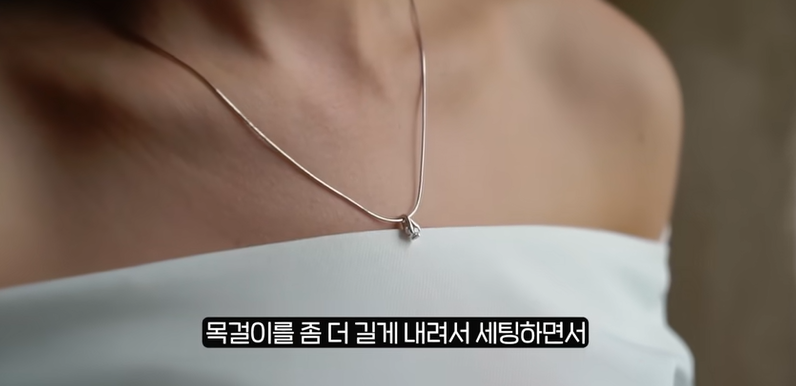 목이 짧거나 굵은 경우에는 목에 딱 붙는 초커 스타일보다는 쇄골 아래로 내려오는 길이의 목걸이가 목을 길어 보이게 합니다. 특히 V자 형태의 펜던트나 Y자 형태의 목걸이는 시선을 아래로 유도하여 목선을 더욱 길고 우아하게 연출해줍니다. 팬던트가 너무 크고 무거운 것보다는 적당한 크기의 심플한 디자인이 좋습니다.