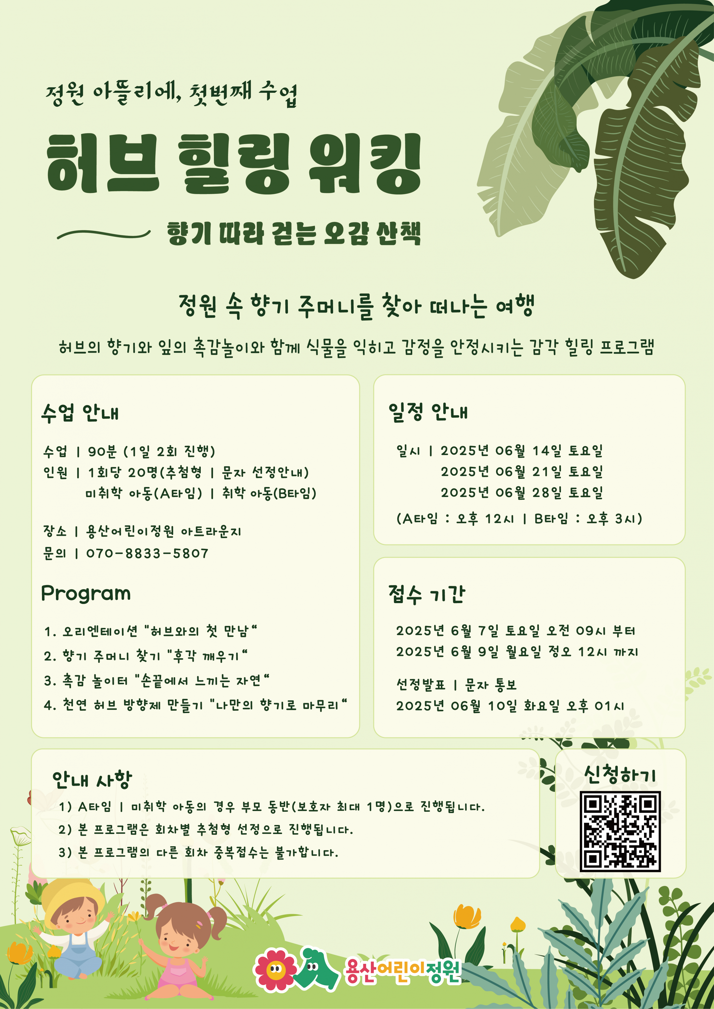 서울 용산어린이정원에서 진행되는 ‘허브 힐링 워킹’ 프로그램을 소개합니다.
